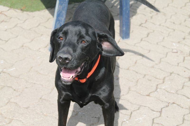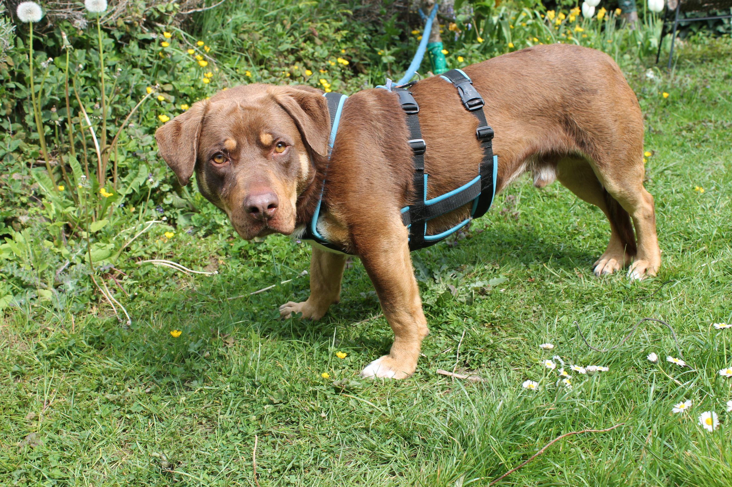 Henry ist ein bunter Mix aus kurzen, stämmigen Beinen (45cm SH), langem und schweren (25 kg) Körper, einem eindrucksvollen Kopf und der tiefen Stimme eines