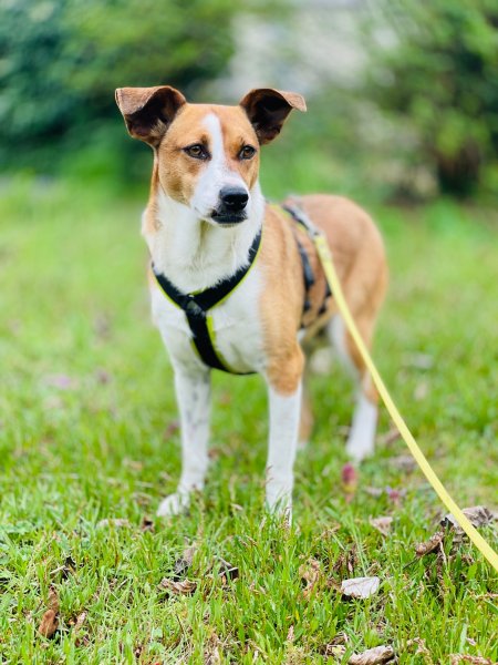 Die junge Hündin Nana, etwa 1 Jahr alt, ist auf der Suche nach einem liebevollen Zuhause, in dem sie in Ruhe ankommen darf. Mit ihren ca. 15 kg und einer Schulterhöhe von rund 43 cm ist sie angenehm klein und handlich – die perfekte Begleiterin für den Alltag.