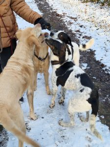 Hundebegegnungen sind entspannt, sie hat gelernt sich an ihrem Menschen zu orientieren, ist manchmal noch unsicher und bleibt dann lieber einen Schritt hinter dem Zweibeiner. Zusammen mit dem Zweithund kommt von Zeit zu Zeit die Unbeschwertheit durch – und sie freut sich wie ein Welpe. Diese Momente werden mehr und wir suchen „ihre Menschen“, die ihr die Sicherheit geben, dass sie ab jetzt nicht mehr selbst auf sich aufpassen muss.