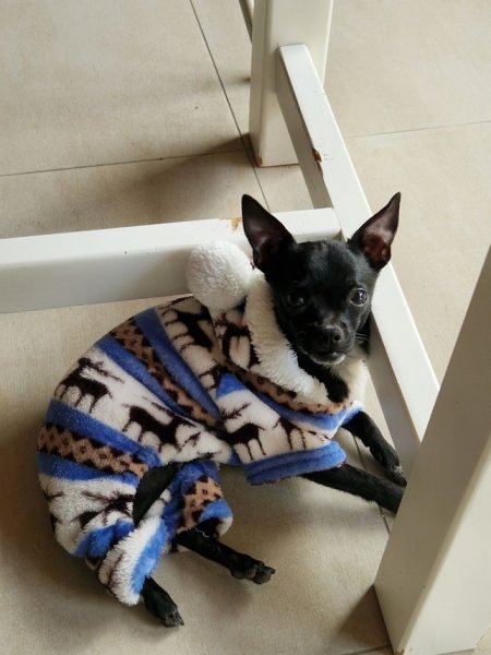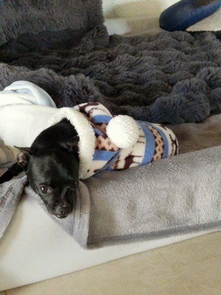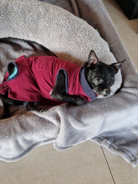 Der tapfere Zwerg hat seine Femurkopfresektion gut überstanden und ist schon wieder fleißig im Haus unterwegs.